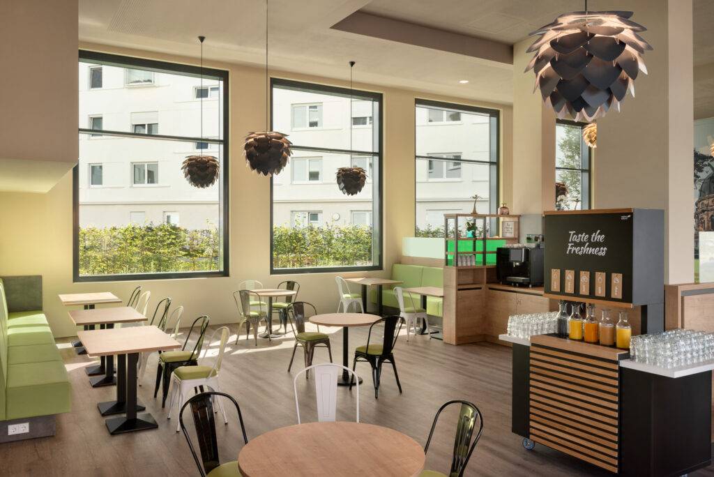 In einem modernen Viertel nahe dem Rhein gelegen, bietet dieses Haus einen einfachen Zugang zur Innenstadt von Mainz. Es eignet sich ideal für Firmenveranstaltungen und verfügt über großzügige und helle Räumlichkeiten sowie eine freundliche Atmosphäre in der zeitgenössischen Lobby. Große Fenster und bequeme Möbel fördern sowohl Entspannung als auch Produktivität, und zahlreiche Steckdosen sind vorhanden. Ein hauseigenes Café bietet Frühstück an, und es gibt Gruppenessbereiche. Die Gäste können auch nahegelegene Aktivitäten im Freien genießen, wie Wanderungen in den umliegenden Hügeln und Weinbergführungen. Mit einfachem Zugang zu öffentlichen Verkehrsmitteln und Parkmöglichkeiten in der Nähe eignet sich dieses Hotel hervorragend als Basis für die Erkundung der Region, während der notwendige Komfort für Geschäftsreisen gewährleistet ist. Zu den Dienstleistungen gehören kostenloses WLAN, ein abwechslungsreiches Frühstück und ein freundliches Personal, das bereit ist, die Bedürfnisse von Geschäftsreisenden zu erfüllen.
